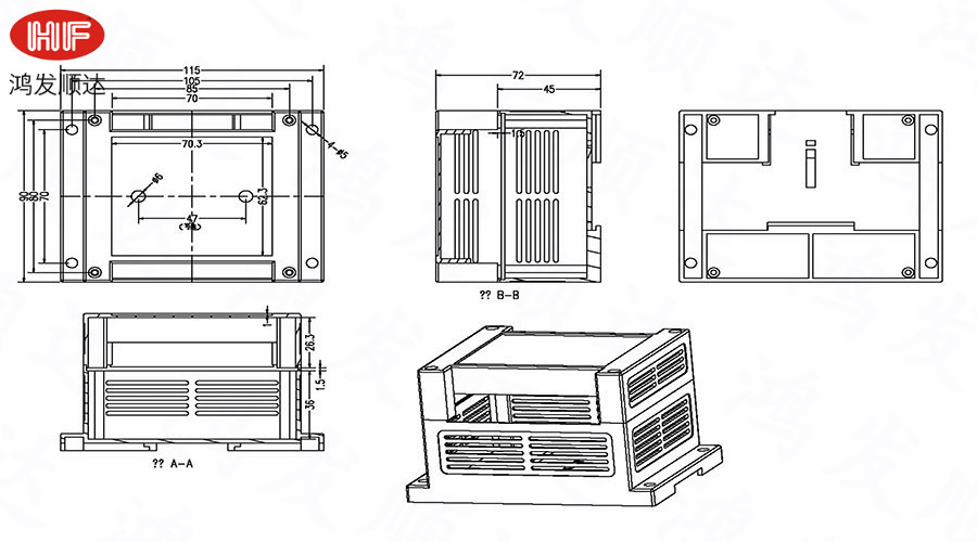 產(chǎn)品用途:廣泛應(yīng)用于電子行業(yè)中各種PLC模塊電路、控制器單元、配電器模塊等 。具有完全絕緣性保護(hù)、散熱性良好等特點(diǎn)。均采用ABS/PC原料生產(chǎn),符合ROHS環(huán)保標(biāo)準(zhǔn)、性能好、耐高溫,不加入任何再生料??筛鶕?jù)客戶要求重新開(kāi)模具。